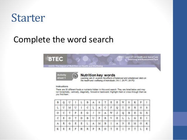 Unit 6 The Impact Of Nutrition On Health And Wellbeing